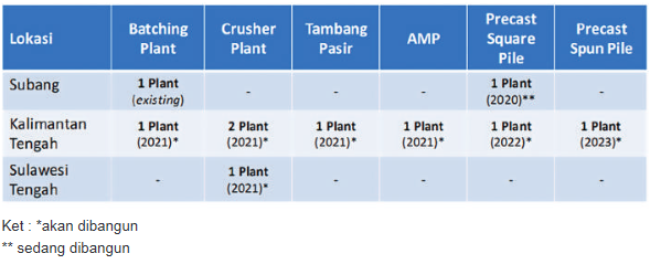 Untuk saat ini operasional emiten datang daru satu plant saja di Subang dengan segmen usaha berupa beton bahan precast dan readymix. Nampaknya rencana ekspansi akan dilaksanakan di tahun 2021 menggunakan dana yang terhimpun dari IPO.