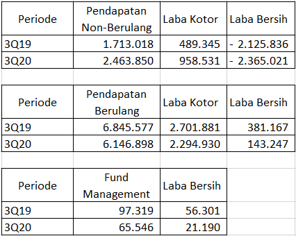 Aneh bukan? Pendapatan yang meningkat malah membuatnya merugi lebih dalam. Hal ini berarti ada kelebihan beban yang mesti dibayarkan. Sebagai informasi rincian laba-rugi sub-segmen telah dihentikan emiten sejak 2019 dan kini hanya diberikan informasi umum tentang total perolehan REMS, RED dan Fund Management.