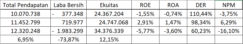 | Rugi Bersih | -2.340.487 | -1.724.934 |
