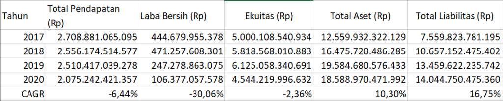 Berikut kinerja yang dibukukan sejak 2017 hingga tahun 2020:
