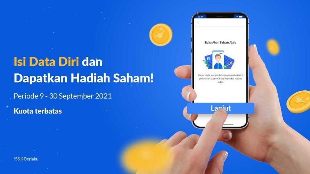 - Bagi kamu yang melengkapi data diri di aplikasi Ajaib pada tanggal 9 – 30 September 2021 akan mendapatkan hadiah 1 lot saham berupa koin Ajaib. Koin Ajaib dapat ditukarkan dengan 1 lot saham saat KYC telah disetujui.