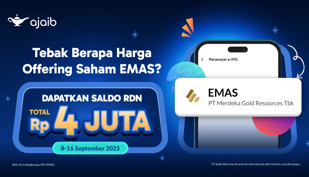 - Peserta menebak berapa harga saham PT Merdeka Gold Resources Tbk (EMAS) pada saat periode Penawaran Umum dimulai yaitu tanggal 17 September 2025.