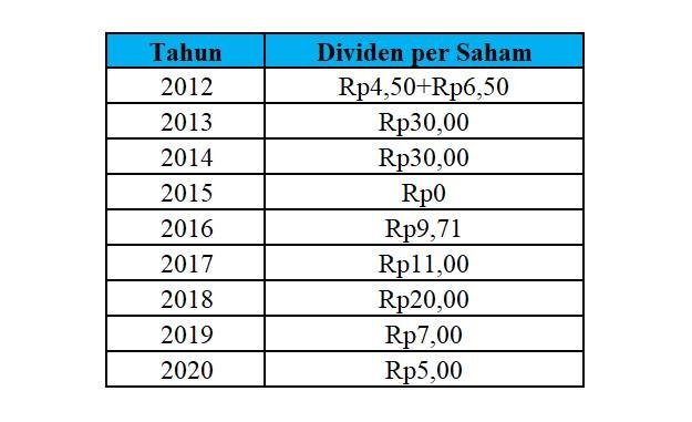 | Tahun | Dividen | Imbal Hasil |