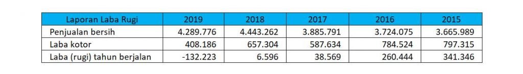 Di mana, kondisi bisnis di tahun 2019 memang sedang tidak sehat. Adapun data yang diambil dari ikhtisar keuangan untuk tahun buku 2019 berdasarkan informasi finansial perseroan seperti berikut: