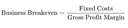 Asumsikan bisnis kamu memiliki Rp100 juta biaya tetap dan gross profit margin sebesar 30%. Maka BEP nya adalah Rp333 juta (Rp100 juta / 0.30). Dalam contoh BEP ini, perusahaan kamu setidaknya harus menghasilkan pendapatan seenggaknya Rp333 juta untuk menutupi biaya tetap dan variabel yang lain.