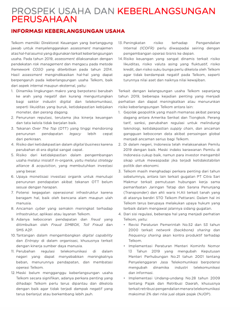 Berikutnya kunjungi laman Prospek Usaha dan Keberlangsungan Perusahaan dalam laporan tahunan Telkom Indonesia.