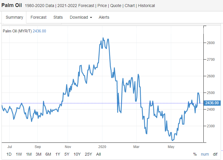 Pada pekan kemarin tepatnya tanggal 15 Juni-19 Juni 2020, harga CPO di bursa komoditas Malaysia melesat 4% lebih. Harga bahkan menyentuh titik tertingginya sejak bulan Mei 2020.