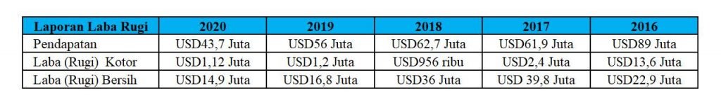 Liabilitas perseroan naik menjadi US$35,25 juta dibandingkan akhir 2022 sebesar US$33,83 juta. Sedangkan ekuitas naik menjadi US$158,03 juta, dibandingkan akhir Desember 2022 sebesar US$155,60 juta.