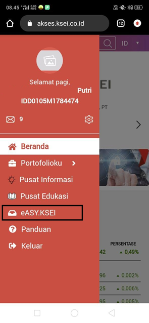 Kamu diwajibkan untuk mendaftar terlebih dahulu di situs tersebut. Sebenarnya semua investor disarankan untuk memiliki akun KSEI untuk memudahkan pengaturan investasi. Di bagian menu kamu bisa masuk ke fitur eASY seperti di bawah;
