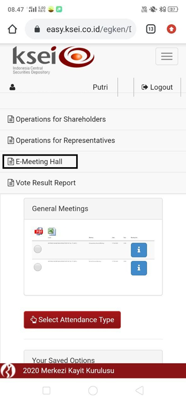 Setelah menyatakan bahwa kamu akan menghadiri RUPS, kamu akan mendapat email konfirmasi dari e-proxy ksei. Setelah itu kamu bisa menghadiri Live Meeting dengan meng-klik E-Meeting Hall sesuai jadwal RUPS.