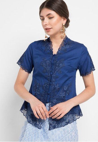 Kebaya dari kain brokat yang dibuat dengan detail kerumitan tinggi menghasilkan kebaya indah yang elegan. Dengan potongan kebaya yang menempel pas di badan, apalagi dengan model bahu terbuka, dijamin pemakainya tampak modern, seksi, sekaligus anggun.