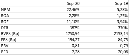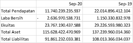 | Laba Bersih | -7.35 triliun | -1.09 triliun | -1.89 triliun | -3.77 triliun | -3.00 triliun |