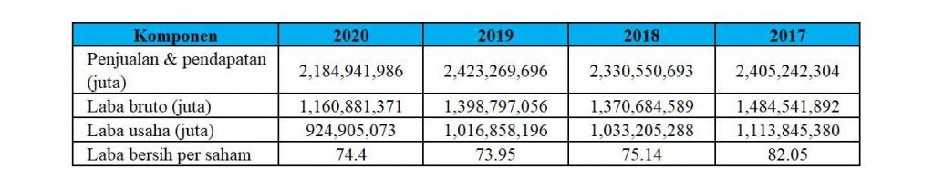 Kalau dilacak lebih jauh ke belakang, kinerja pendapatan dan laba JRPT tidak pernah naik ataupun turun terlalu drastis. Berikut ini rangkuman sejumlah parameter dari ikhtisar laba/rugi 2017-2020: