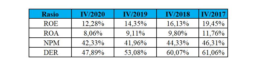 Bagaimana dengan rasio-rasio keuangan JRPT? Berikut ini perbandingan kinerja keuangan JRPT selama empat tahun terakhir: