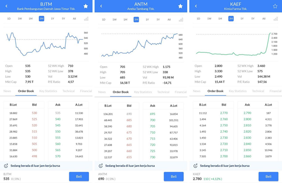 Ketika kamu menilik order book saham mana pun pada jam-jam perdagangan bursa, kamu akan menyaksikan adanya bid dan ask pada beberapa tingkat harga yang berbeda-beda. Bid berada pada baris sisi kiri, sedangkan ask berada pada baris sisi kanan. Tampilan serupa akan terlihat dalam order book di semua platform trading saham yang disediakan oleh sekuritas manapun.
