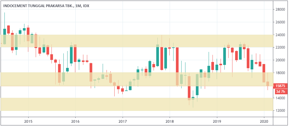 Ditilik dari segi teknikal, posisi harga saham INTP masih dalam tren menurun. Penurunan harga kemungkinan berlanjut hingga kisaran Rp13.000-14.000. Bagaimana investor sebaiknya menyikapi proyeksi saham seperti itu?