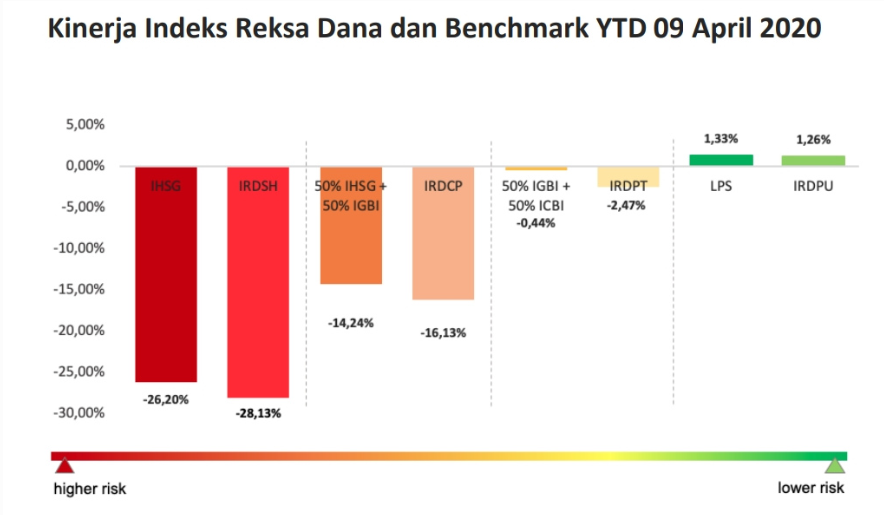 Secara year to date (ytd) hingga 9 April 2020, berdasarkan data infovesta yang dirangkum Bisnis Indonesia, mencatat bahwa kinerja reksa dana pasar uang memberikan keuntungan (return) sebesar 1,26 persen.