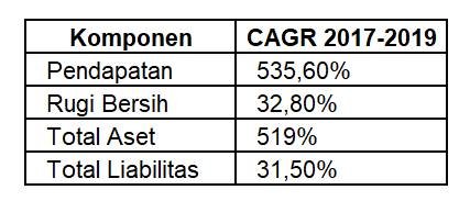 Pendapatan IKAI melonjak signifikan antara tahun 2017-2019. Total asetnya pun terus bertambah. Tapi, lagi-lagi, IKAI juga mencatat pertumbuhan rugi bersih dalam rentang tahun tersebut. Berikut ini rata-rata pertumbuhan tahunan (compound annual growth rate/CAGR) sejumlah komponen kinerja IKAI periode 2017 hingga 2019: