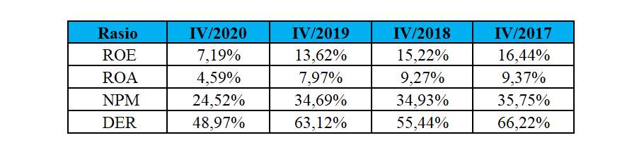 Bagaimana dengan rasio-rasio keuangan MTLA? Berikut ini perbandingan kinerja keuangan MTLA selama empat tahun terakhir:
