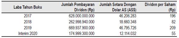 MCOL sangat rajin bagi-bagi dividen. Hal ini terlihat dari riwayat pembagian dividen MCOL selama empat tahun terakhir: