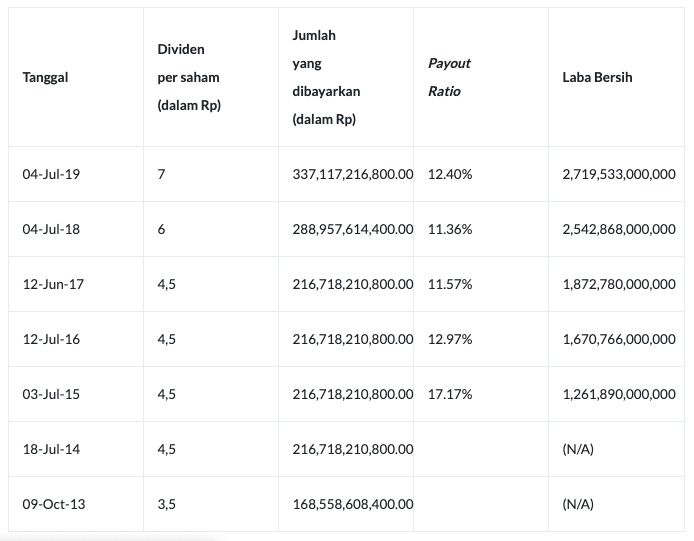 | Tahun | Dividen | Jenis | Imbal Hasil |