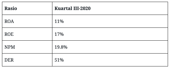 Alhasil laba sebelum bunga dan bunga (EBITDA) naik 10,3% menjadi Rp 1,79 triliun, dari sebelumnya Rp 1,62 triliun. Kemudian laba bersih juga naik 30,7% menjadi Rp 1,35 triliun, dari sebelumnya Rp 1,03 triliun.