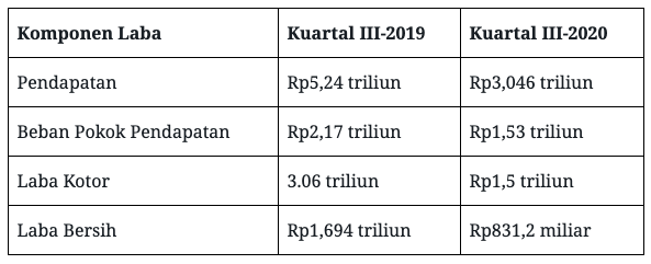| Laba kotor | 1,00 triliun | 3,44 triliun | 3,26 triliun | 2,80 triliun | 1,94 triliun |