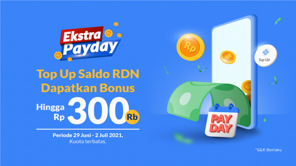 Kamu akan mendapat bonus saldo RDN apabila melakukan top up pada tanggal 29 Juni – 2 Juli 2021.