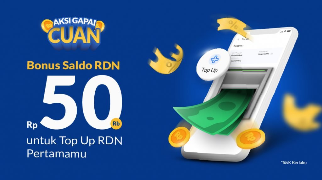 Bonus saldo RDN Rp50.000 dengan minimal top up Rp1.000.000.